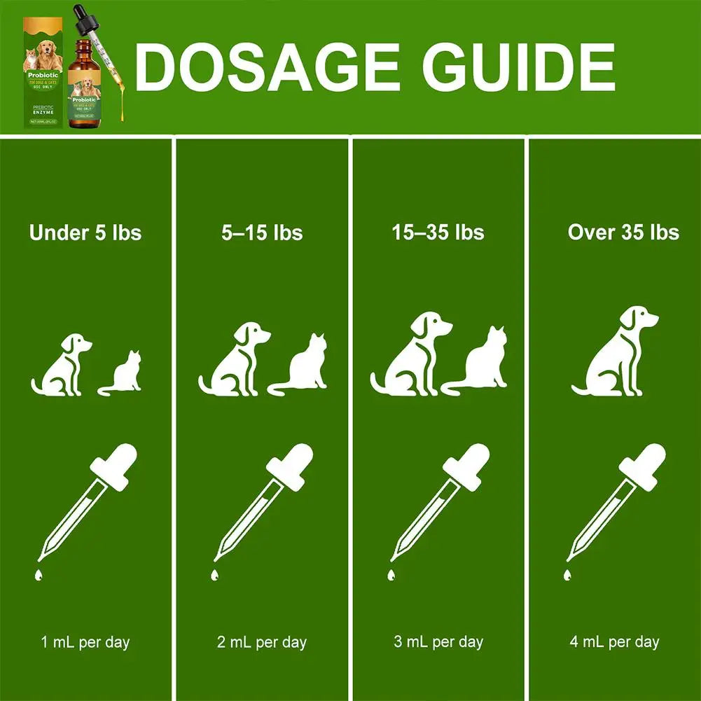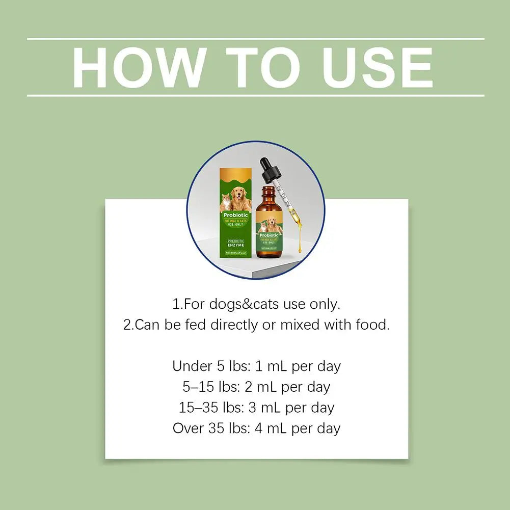 Each drop delivers a potent blend of beneficial probiotics and essential enzymes that work synergistically to promote a healthy digestive system and strengthen natural immunity. Ideal for pets with sensitive stomachs, irregular bowel movements, or stress-related digestive issues.